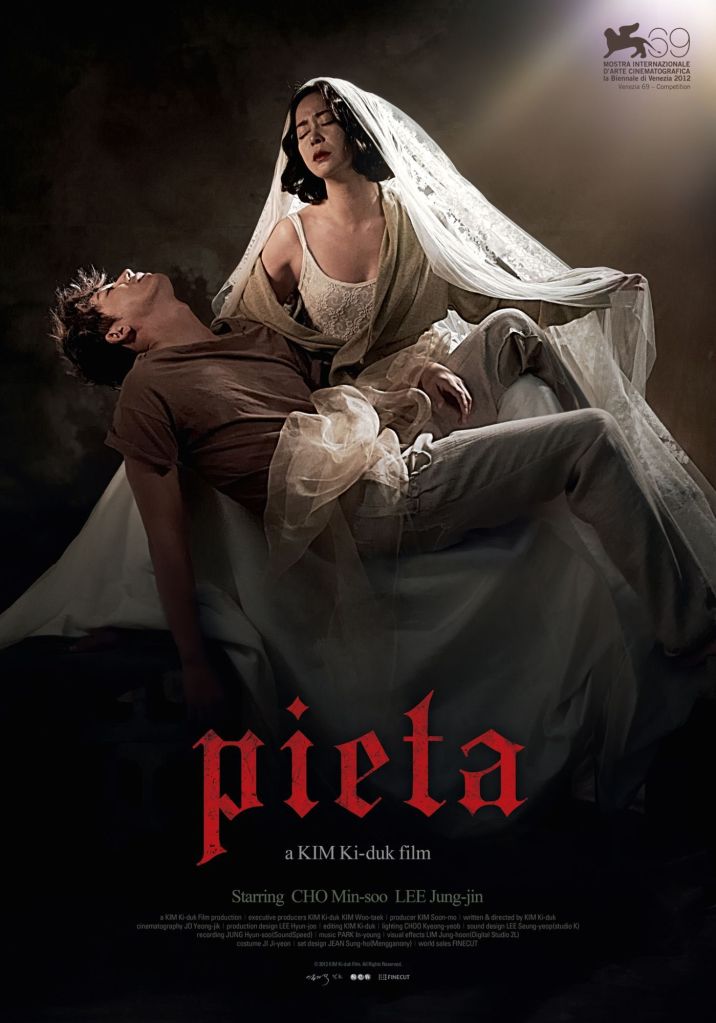 L’improvvisa morte del celebre regista coreano Kim Ki-duka causa del Covid-19, che ho tanto amato in gioventù, mi ha spinto a recuperare questo suo film, disponibile su Raiplay, un po’ più recente rispetto a L’Arco, ultimo film del regista che avevo visto e che non mi era piaciuto a causa del simbolismo confuso e della morbosità della situazione narrata. In Pietà invece ho ritrovato quello che mi ha sempre affascinata di questo grande regista: un racconto lucido e molto sentito dei sentimenti umani, che sopravvivono anche nella miseria e nella violenza più atroce, e anzi in alcuni casi germogliano in esse. I film di Kim Ki-duk infatti trasmettono sempre la fiducia nel genere umano e nella sua capacità di amare e aiutare il suo prossimo, anche contro ogni logica e ogni ragione. In questo caso il sentimento protagonista è la pietà, come esplicitato dal manifesto del film ispirato all’omonima scultura di Michelangelo. La visione non è sempre facile, la ben nota violenza che è cifra stilistica dell’autore di certo non lo rende un film per tutti, ma io trovo che il messaggio finale sia ancora una volta positivo e ricco di speranza, a ripagare tutti i turbamenti dello spettatore. Sembra incredibile la rapidità con cui Kang-ho passa dalla violenza fisica verso una donna sconosciuta che crede bugiarda all’abbandono totale al suo affetto e al desiderio di rivivere l’infanzia perduta accanto alla madre: in poche scene il ragazzo passa da spietato mutilatore a bambino felice che gioca con i palloncini e mangia zucchero filato. Tale è il bisogno di affetto, dalla cui mancanza nasceva quella compiaciuta violenza che tanti guai continuerà a procurargli, perché, proprio come nel film di Tim Burton Sweeney Todd, dalla violenza non può mai derivare la felicità, che nasce invece dai legami empatici tra gli esseri umani, ma solo altra violenza. Unico difetto del film è la scena finale, in cui il titolo “Pietà” viene spiegato dalla protagonista in un monologo didascalico narrativamente poco efficace: avrei preferito un altro modo per far trasparire i suoi contrastanti sentimenti nell’apice della storia. A parte questa piccola pecca il film, anche se non offre una prospettiva nuova rispetto alle altre opere del regista coreano, è efficace, potente, appagante, ma di sicuro questo tipo di cinema non è per tutti. Consigliato a chi già conosce e ama il regista; per chi volesse approcciarsi a Kim Ki-duk per la prima volta consiglio invece Ferro 3, il più divertente e meno violento tra quelli che ho visto nonché il mio preferito.