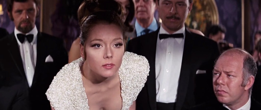 Mentre George Lazenby si prepara a diventare 007 con corsi di dizione (per perdere il forte accento australiano) e di portamento (per camminare in modo meno “australiano”) Saltzman e Broccoli cercano il resto del cast. Per il ruolo importantissimo di Tracy, che non sarà solo una Bond-girl ma diventerà anche sua moglie, viene scelta l’attrice inglese Diana Rigg (i produttori vorrebbero Brigitte Bardot, che è anche bionda come il personaggio del libro, ma non è disponibile). Diana ha già molta esperienza nel cinema e nelle serie tv (ha sostituito Honor Blackman come protagonista femminile nel telefilm Avengers, sul cui set ha anche imparato a girare le scene di lotta) e viene affiancata al neofita George Lazenby per fargli da guida. Nel ruolo del villain Ernst Stavro Blofeld non ci sarà più Donald Pleasance, visto in You Only Live Twice, ma Telly Savalas, (costretto a ripiegare all’indietro i lobi delle orecchie per corrispondere alla descrizione di Fleming) che diventerà famoso qualche anno più tardi come Tenente Kojak. All’attore italiano Gabriele Ferzetti, dalla vasta filmografia ma per me conosciuto soprattutto come lo spietato Morton di C’era una Volta il West, viene affidato un ruolo complesso, quello del padre di Tracy, incaricato di spiegare allo spettatore la trama del film in un lungo monologo che, nonostante lui cerchi di ravvivarlo compiendo varie azioni in scena (versando da bere, camminando, accendendo il sigaro…) risulta comunque piuttosto noioso. L’attrice tedesca Ilse Steppat, che interpreta la cattiva Irma Bunt, morirà poco dopo il termine delle riprese. L’attore George Baker, vecchio amico di Ian Fleming, viene convocato con un doppio compito: interpretare Sir Hilary Bray dell’istituto araldico e doppiare la voce di George Lazenby nelle scene in cui Bond si spaccia per Sir Hilary: nonostante l’impegno di George, imitare in modo convincente un accento britannico è fuori dalla sua portata. Tornano come sempre le tre rocce della serie: Lois Maxwell/Miss Moneypenny, Desmond Llewelyn/Q e Bernard Lee/M; tra l’altro in questo film abbiamo per la prima volta la gioia di vedere questi tre personaggi in scena tutti insieme, ospiti al matrimonio di James Bond.