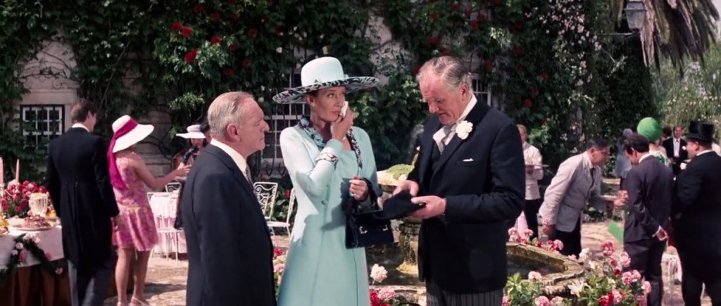 Per il matrimonio di Bond il regista vuole fiori ovunque, perché ha deciso che i fiori sono caratteristici del personaggio di Tracy, e infatti compaiono sempre insieme a lei: sul terrazzo, sui suoi abiti, sul letto, e naturalmente sull’abito da sposa. Sfortunatamente è tutto rose e fiori anche per Bernard Lee (M), che durante una pausa viene travolto da George Lazenby che sta mostrando la sua abilità di cavallerizzo, finendo tra le rose e ferendosi una gamba. Cubby Broccoli, che non si allontana quasi mai dal set, osserva e rimugina… Anche Lois Maxwell (Moneypenny) avrà una brutta sorpresa al termine delle riprese: tutti gli abiti fatti su misura per lei, che aveva avuto il permesso di tenerli, sono già stati portati via. Viene invece affidata a Desmond Llewelyn (Q) una battuta molto controversa rivolta allo sposo: “007, sono stupito, io pensavo che lei fosse…” Cosa? Perché Q pensava che 007 non si sarebbe mai sposato? Sarà davvero per la sua reputazione di dongiovanni? Non è certo. Quel che è certo è che al termine della cerimonia Bond si allontana con la moglie sulla sua iconica Aston Martin DB5. Anche se, purtroppo, non andranno molto lontano…