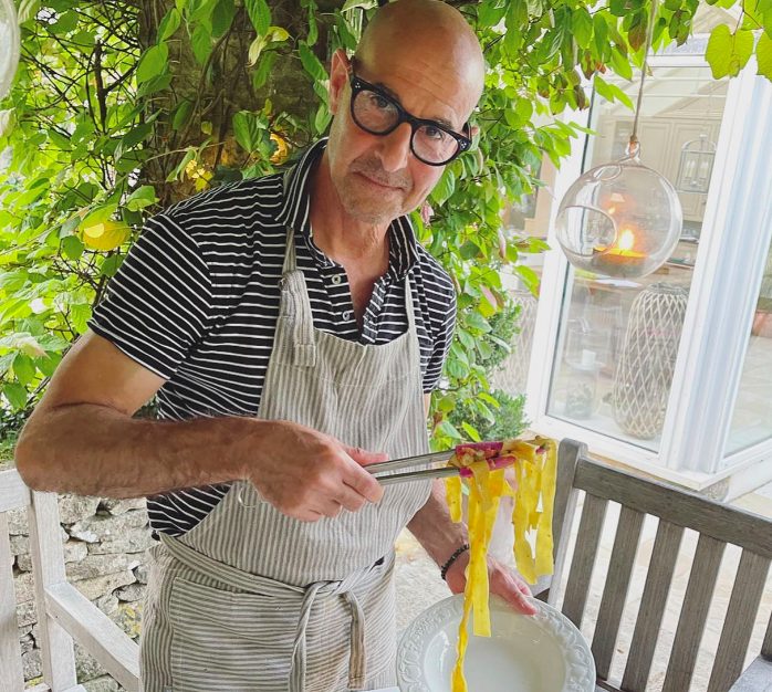 Chi ha avuto occasione di bazzicare di quando in quando Cinemuffin ormai sa che io faccio molto spesso sogni bizzarri. Anche questa volta, tutto è iniziato così: ho sognato Stanley Tucci. La cosa era già incredibile di per sè, visto che non mi capita di vedere un film o una serie con lui da vari anni; anzi, quando ci ho riflettuto mi sono resa conto di ricordare L’attore statunitense principalmente per il suo ruolo in Il Diavolo veste Prada, anche se lo avevo visto in ruoli minori in moltissimi altri film. Nel mio sogno Stanley Tucci aveva pubblicato una sua autobiografia, che era diventata immediatamente un best seller, anzi, uno dei libri più venduti di tutti i tempi, che lo aveva reso celebre in ogni dove. Al mio risveglio non ricordavo il sogno e sono andata, come avevo programmato, a fare delle spese in centro. Passando davanti alla libreria, improvvisamente mi è tornato in mente il sogno… “Ma no, dai…non può essere…” mi dicevo… eppure non ho potuto resistere! Sono entrata e sono andata diretta al (minuscolo) settore biografie della (striminzita) sezione dei libri in lingua originale. Beh, sono rimasta basita (F4) quando mi sono ritrovata tra le mani Taste – My Life through Food (Ci vuole Gusto – La mia Vita attraverso il Cibo, edizione italiana Baldini-Castoldi), di Stanley Tucci! Non propriamente una biografia, anche se l’attore e regista racconta molti episodi della sua vita e della sua carriera, ma un’analisi completa di un determinato aspetto dell’esistenza, per lui imprescindibile: il cibo. Scoprirlo, prepararlo, condividerlo, per Stanley (la cui famiglia ha origini italiane, per la precisione calabresi) sono parte integrante della vita in ogni suo aspetto: lavoro, viaggi, famiglia… e anche l’amore, visto che l’attore e la sua seconda moglie si sono innamorati proprio davanti ai fornelli.